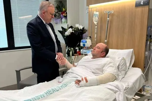 آنتونی آلبانیزی، نخست وزیر استرالیا به عیادت قهرمان تیراندازی حادثه سیدنی در بیمارستان رفت.